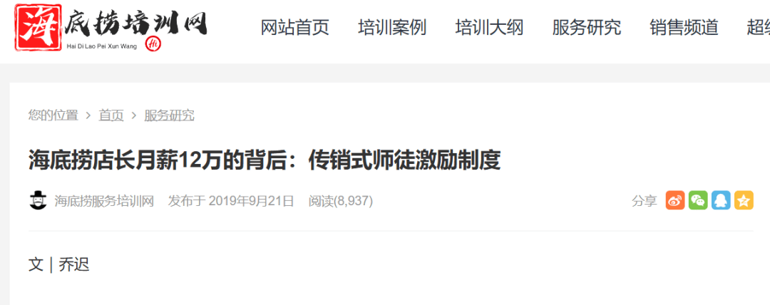 4.海底捞服务培训网,《海底捞店长月薪12万的背后:传销式师徒激励制度》,2019.09