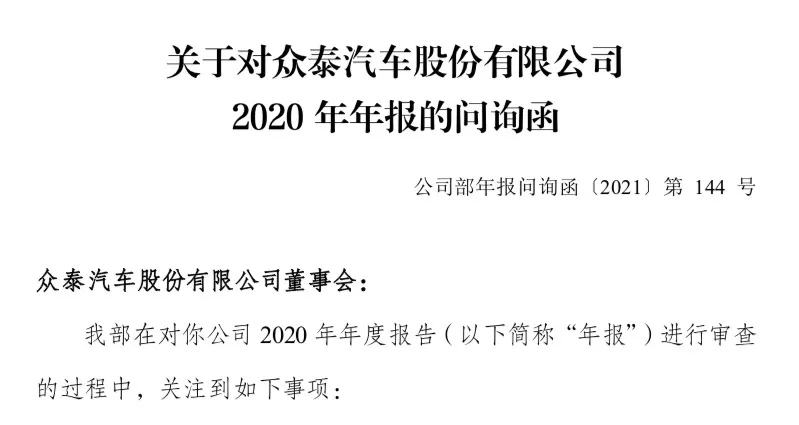 除此之外,公司年内还被多次下发关注函与问询函。5月19日,*ST众泰收到深圳证券交易所发出的《关于对众泰汽车股份有限公司 2020 年年报的问询函》。6月10日,*ST众泰回复年报问询函表示,公司2020年整车业务虽然基本停滞,但公司部分汽车零部件业务以及门业业务仍在正常运营。公司对自报告期末起12个月的持续经营能力改善拟定了相关措施并进行了评估,因此,尽管公司股票被实施退市风险警示并叠加其他风险警示,公司采取持续经营假设为基础编制2020年年报的依据是充分的。