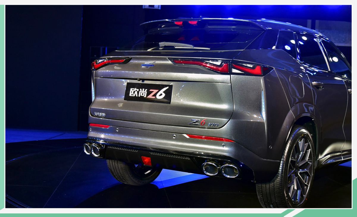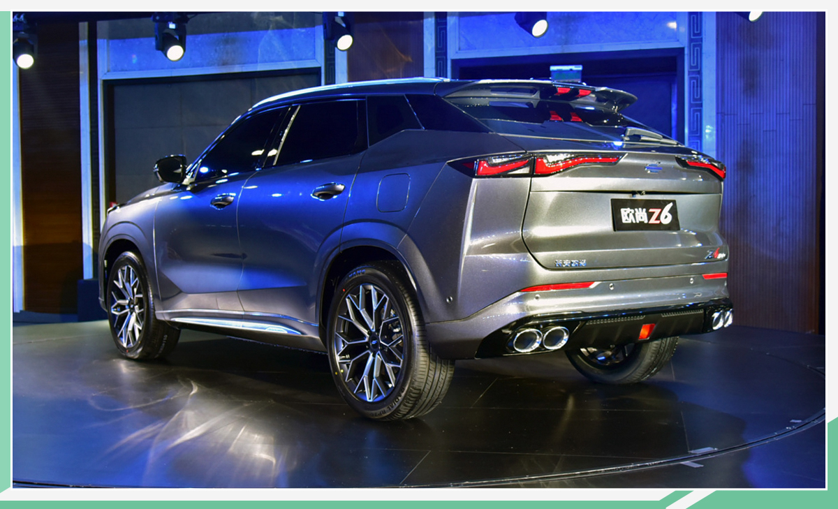 车尾部分,欧尚Z6则将“性能值”拉满,新车配备了硕大且造型个性的尾翼、双边共四出镀铬尾排等,看上去就十分唬人。另外,在空气动力学套件的加持下,它的风阻系数仅为0.336。